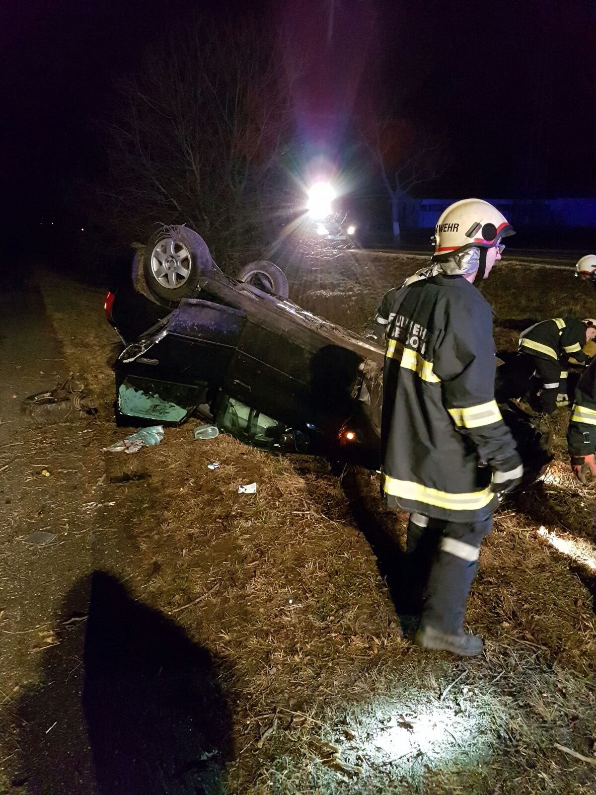 Die FF Obersdorf wurde um 18:22 Uhr zu einer Fahrzeugbergung zwischen Eibesbrunn und Obersdorf alarmiert. Dort angekommen bot sich folgendes Bild: ein PKW kam aufgrund von Glatteis von der Fahrbahn ab und überschlug sich. Dabei rammte das Fahrzeug noch zwei Bäume. Die Insassen konnten selbst das Auto verlassen und befanden sich bereits bei der anwesenden Rettung bzw. Notarzt. Wir stellten mittels Seilwinde das Fahrzeug wieder auf und brachten es mit der Abschleppachse zu einem von der Polizei gesagten Platz.