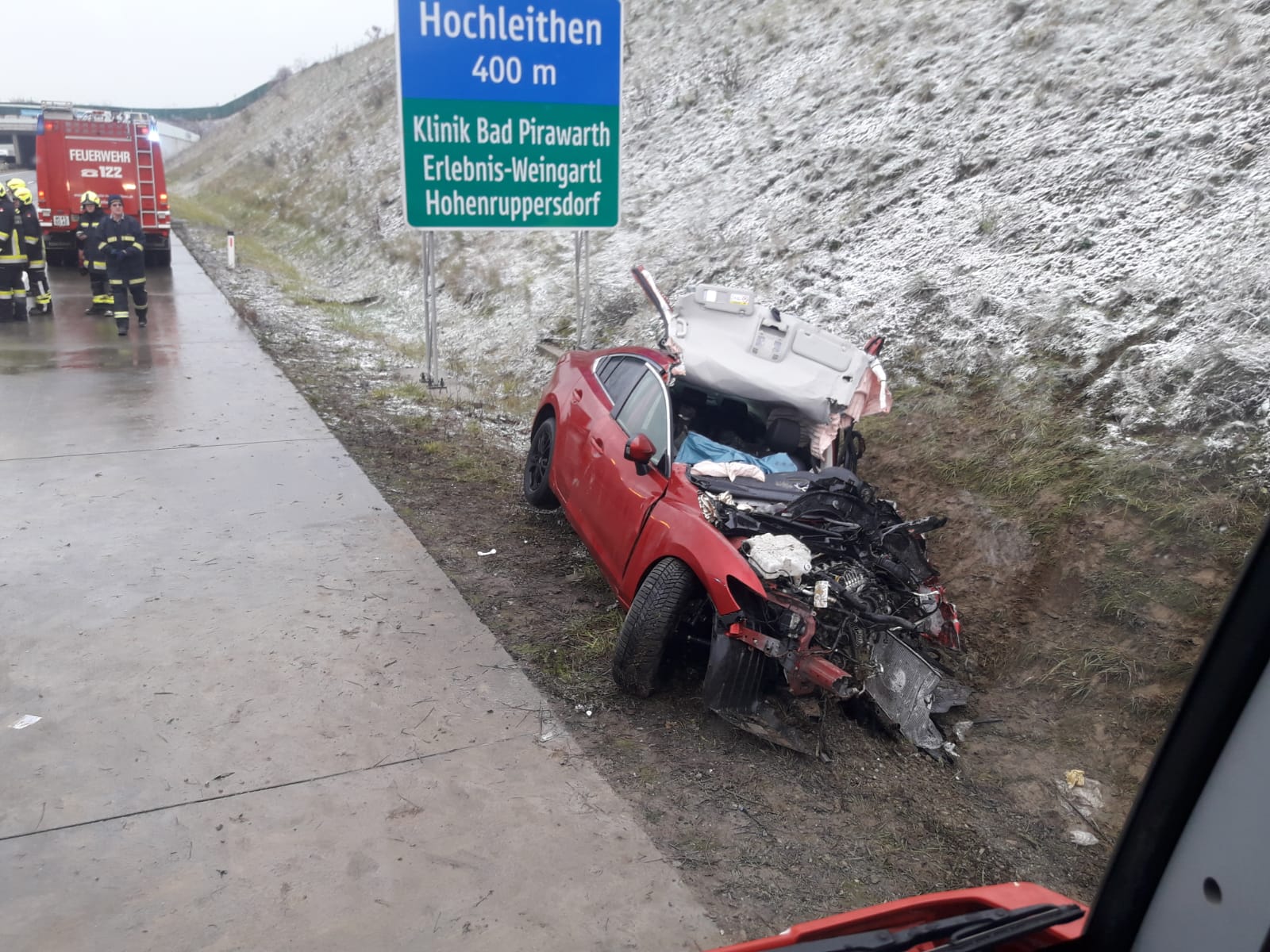 Heute, um 7:41 Uhr wurde die Feuerwehr Obersdorf zu einer Fahrzeugbergung mit Menschenrettung auf die A5 (Richtungsfahrbahn Brünn) gerufen.