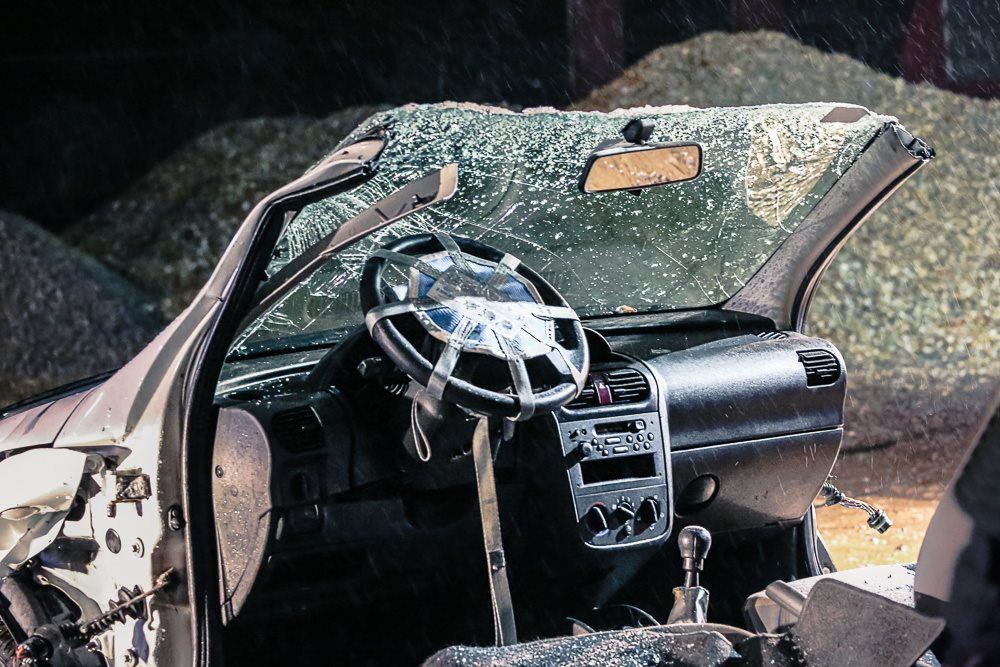 Bei Nacht und Regen, also unter realistischen Bedingungen, übten wir mit dem neuen hydraulischen Rettungsgerät den Ernstfall.