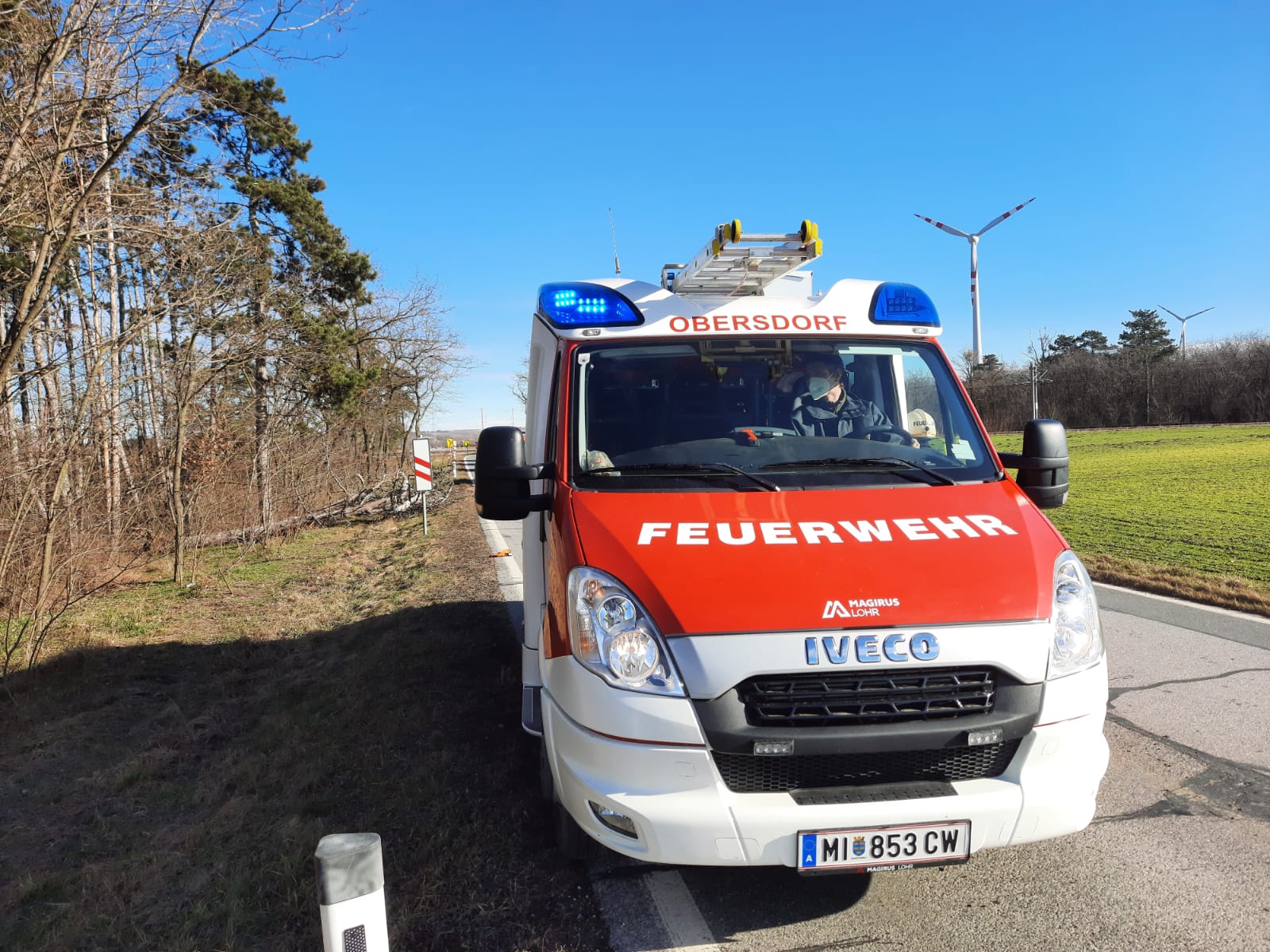 Wenige Minuten später machten wir uns mit Tank 2 und Kommando auf den Weg. Bei unserem Eintreffen waren bereits die Polizei sowie die Straßenmeisterei vor Ort.