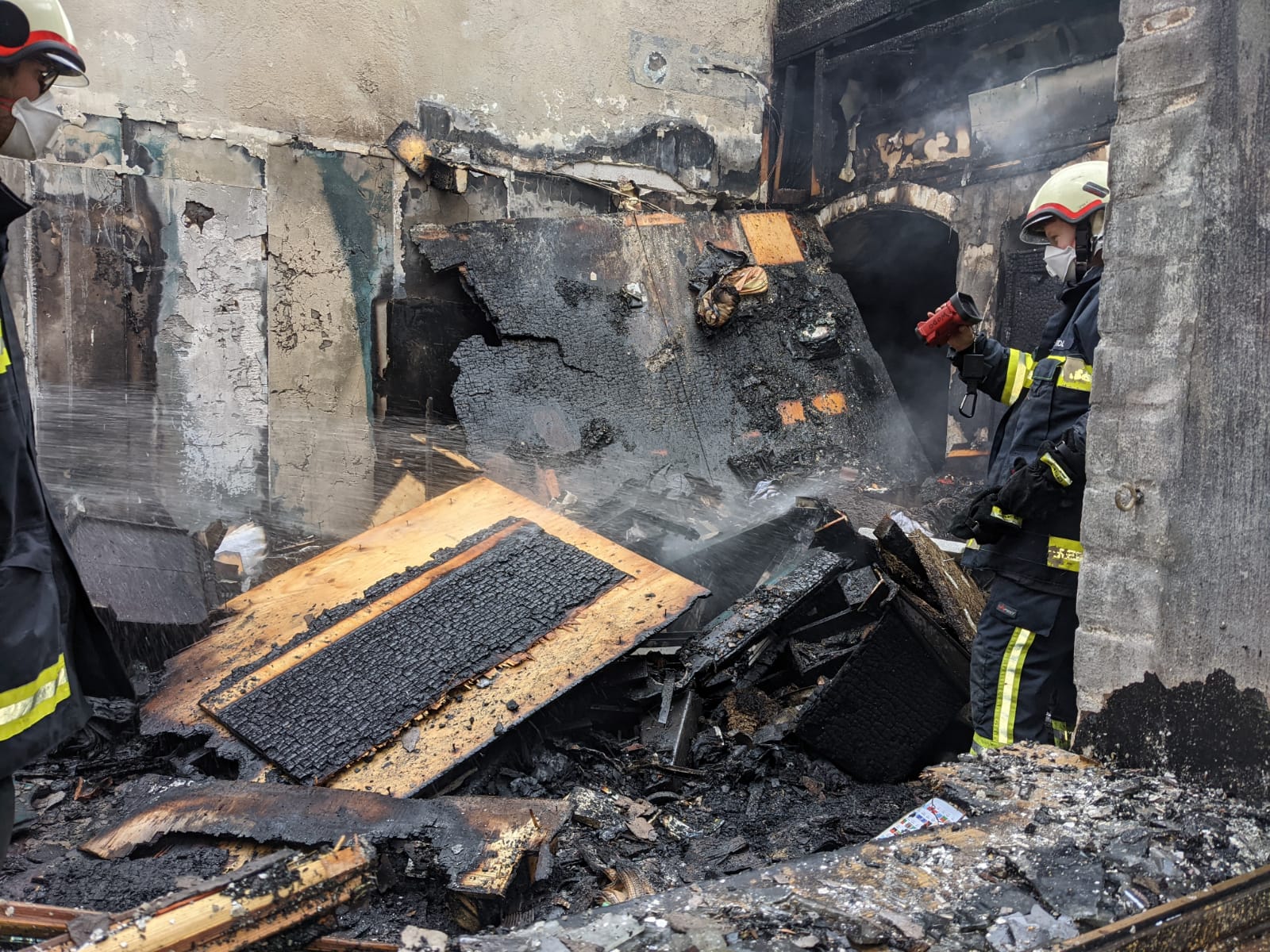 Mittels der Wärmebildkameras der Feuerwehren Wolkersdorf und Münichsthal wurde nach weiteren Glutnestern gesucht. Um die Löscharbeiten zu ermöglichen, musste ein Zwischenboden mit der Motorsäge abgetragen werden und konnte anschließend abgelöscht werden.