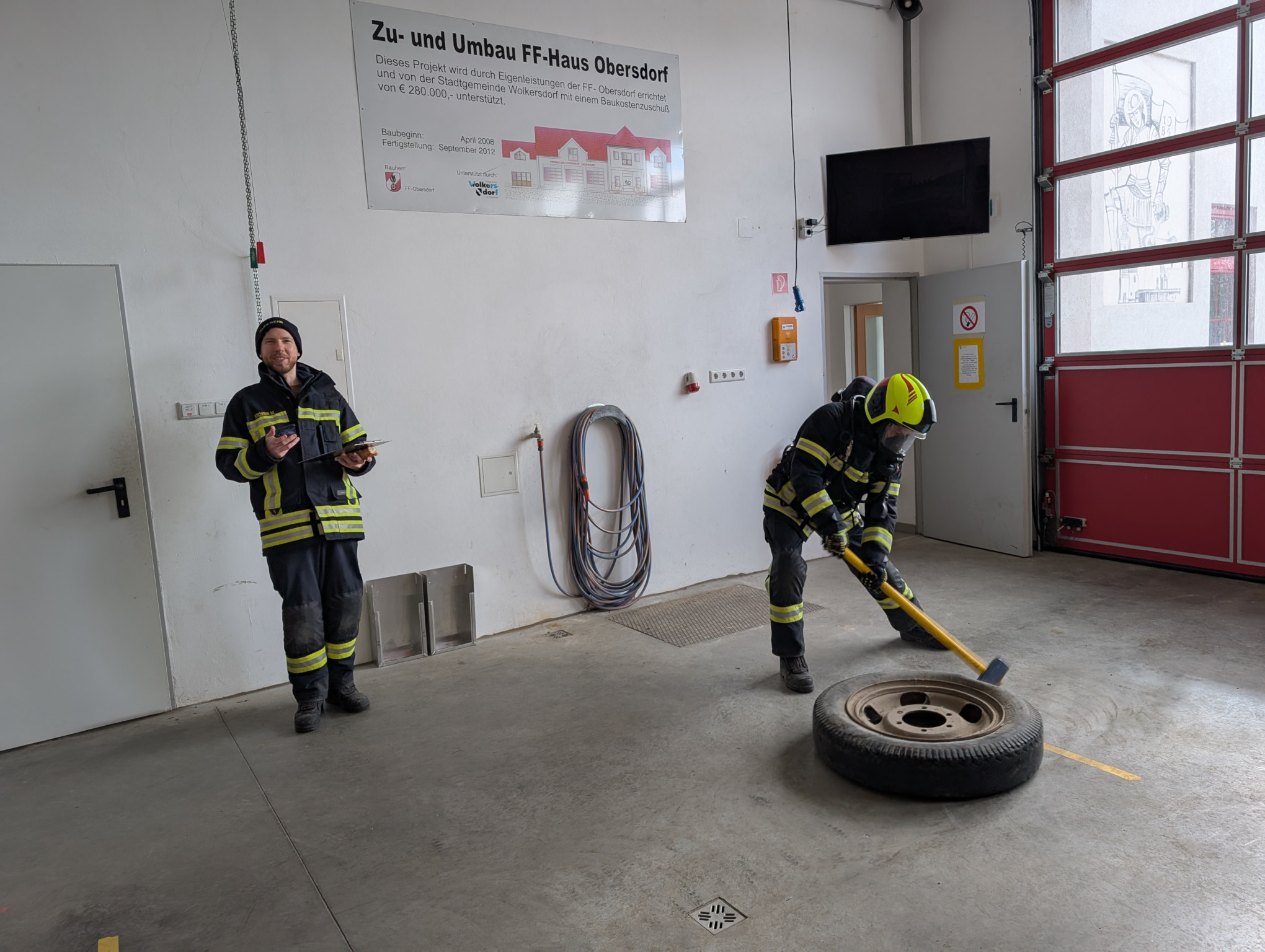 - Bewegen eines liegenden LKW Reifens mittels Vorschlaghammer