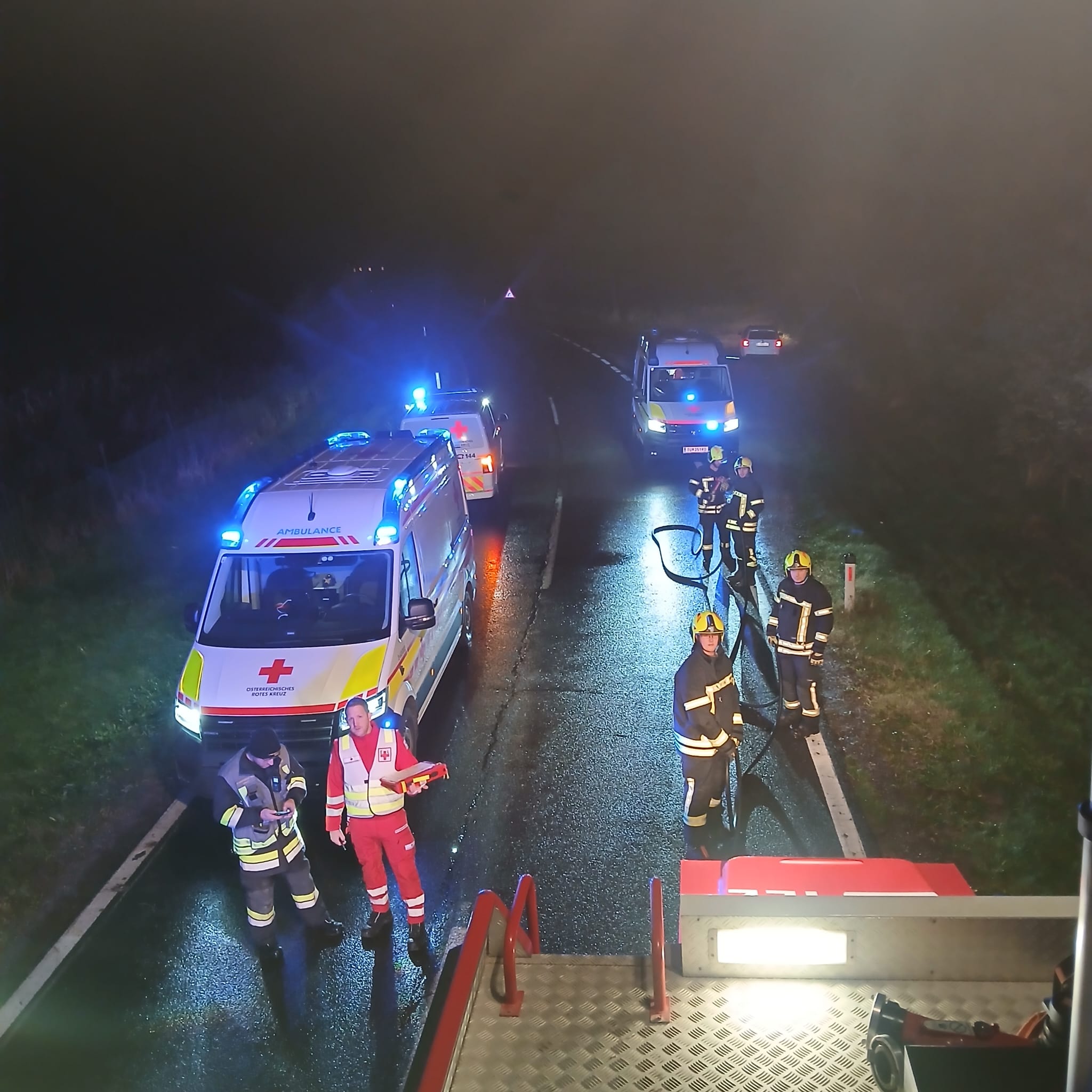 Am Samstagabend, dem 25. Oktober 2025, wurden wir um 18:52 Uhr gemeinsam mit der Freiwilligen Feuerwehr Deutsch-Wagram zu einem Verkehrsunfall mit unklarer Lage (T2) auf die Landesstraße L6 alarmiert.