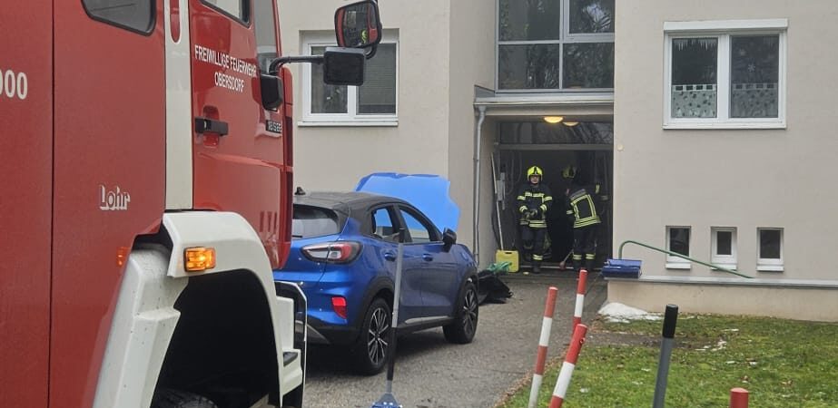 Aus bislang ungeklärter Ursache war die Lenkerin eines PKW in den Eingangsbereich eines Wohnblockes gefahren, wo das Fahrzeug schließlich zum Stillstand kam. Glücklicherweise befanden sich zu diesem Zeitpunkt keine weiteren Personen im unmittelbaren Gefahrenbereich.