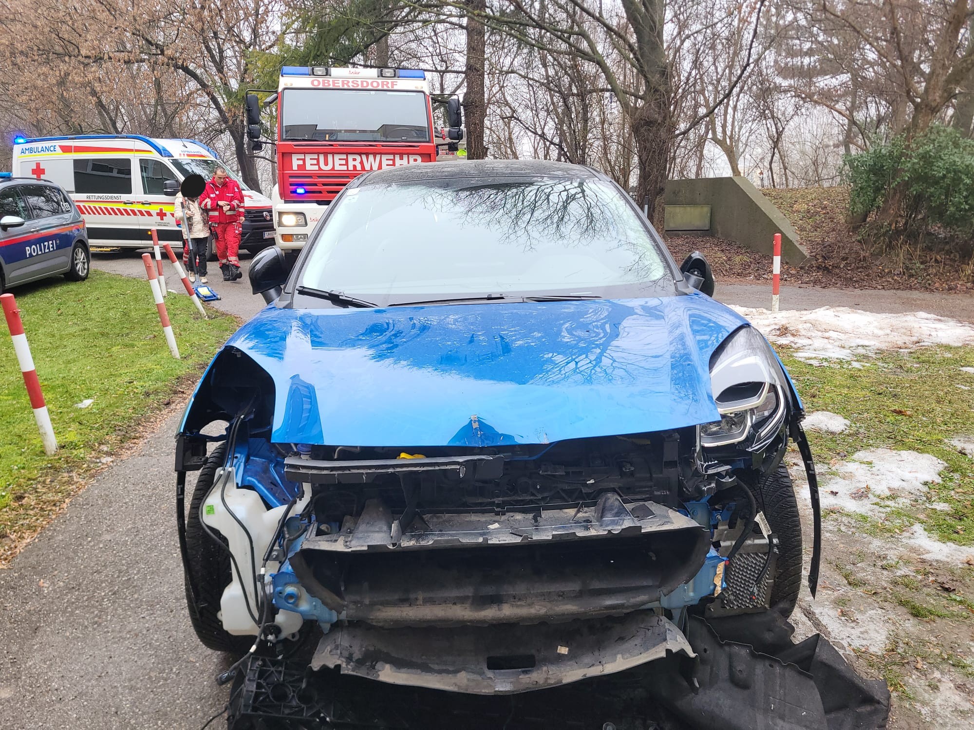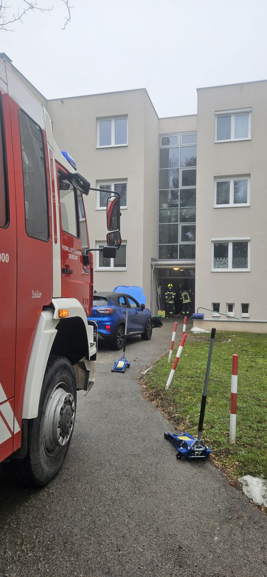 Aus bislang ungeklärter Ursache war die Lenkerin eines PKW in den Eingangsbereich eines Wohnblockes gefahren, wo das Fahrzeug schließlich zum Stillstand kam. Glücklicherweise befanden sich zu diesem Zeitpunkt keine weiteren Personen im unmittelbaren Gefahrenbereich.
