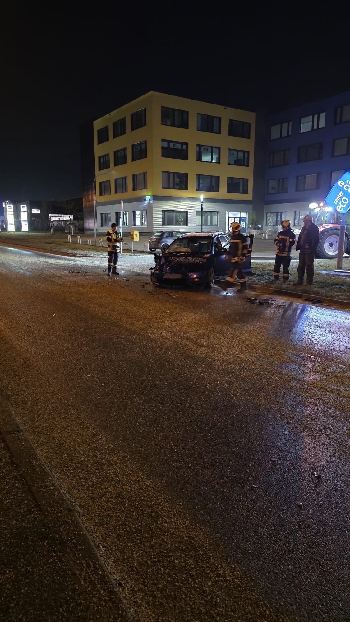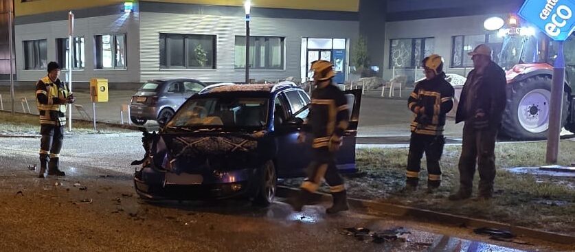 Ein Winterdienstfahrzeug war mit einem PKW kollidiert, es beschränkte sich zum Glück jediglich auf einen Blechschaden.